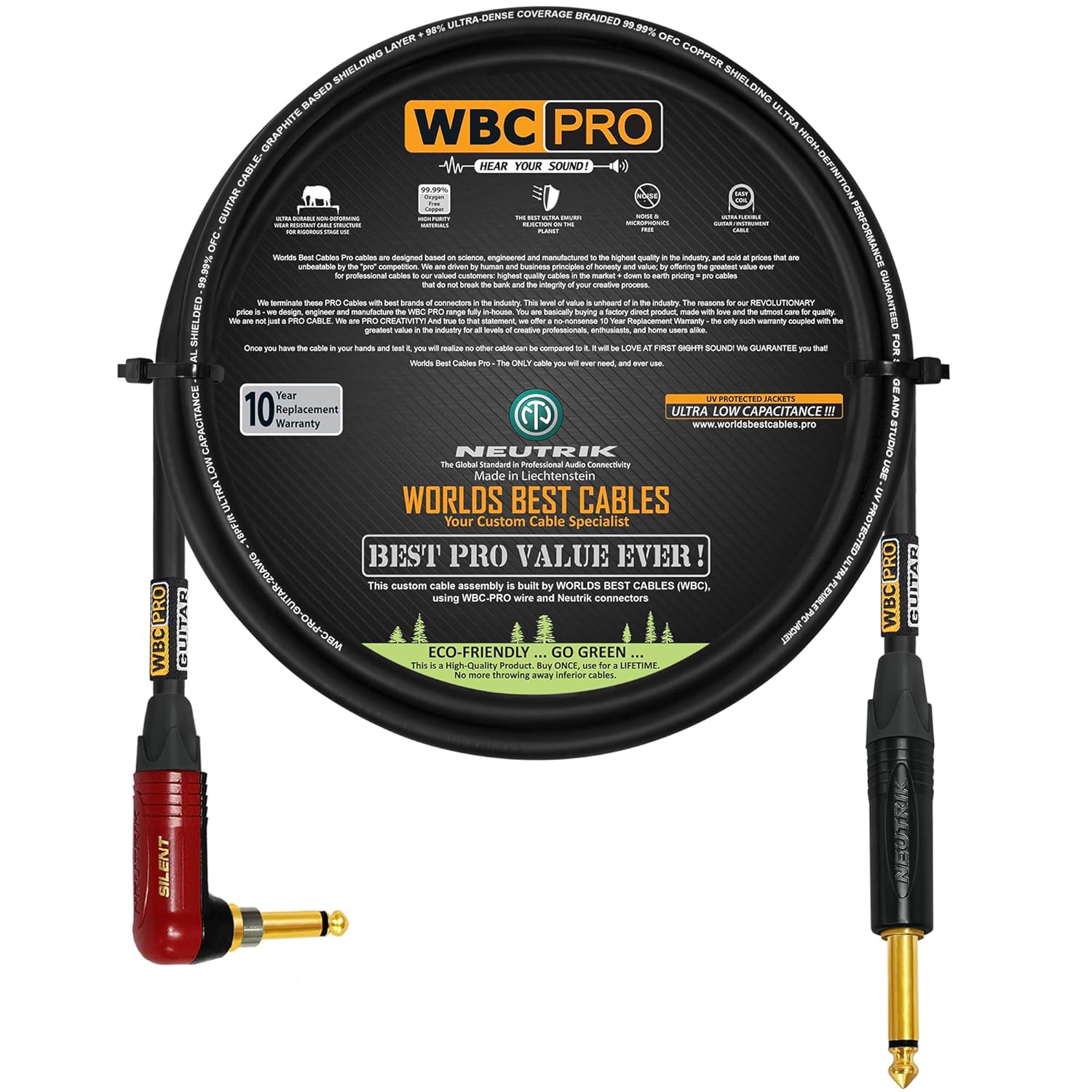 The WBC-PRO-GUITAR cables are designed based on science, engineered & manufactured in-house to the highest quality in the industry, and sold at prices that are unbeatable by the “pro” competition. These high-value, high-quality cables will not break your bank and the integrity of your creative process. With WBC-PRO you are buying a product made with love and the utmost care for quality. WBC-PRO, the only cable you will ever need!
